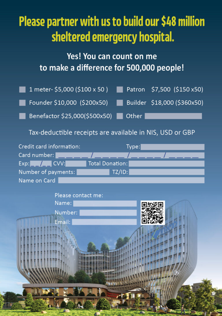 Did you attend the 2025 Supporters of Laniado Gala? Did you buy an ad in the Journal? AND/OR you are inspired to support the critically needed, new Sheltered Emergency Hospital building campaign?